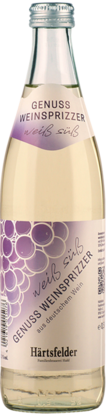 Unsere Härtsfelder Genuss-Weinsprizzer kombinieren hochwertigen deutschen Wein mit einer angenehm spritzigen Leichtigkeit. Ob weiß sauer, weiß süß oder rosé sanft – jede Sorte überzeugt durch ihr harmonisches Zusammenspiel aus Weincharakter und erfrischender Spritzigkeit. Hochwertige Grundweine, schonende Verarbeitung und stetige Qualitätskontrollen garantieren ein rundum gelungenes Geschmackserlebnis, das in bester Härtsfelder Tradition entsteht.